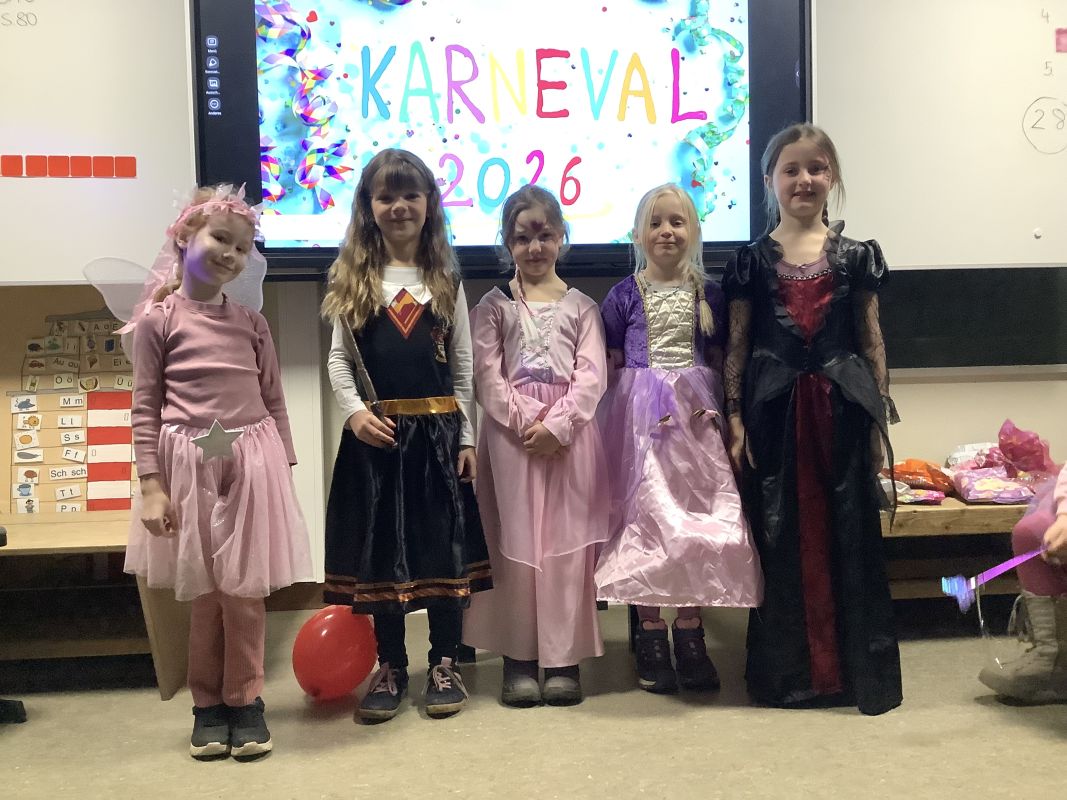 Heute haben wir das erste Mal Karneval in der Grundschule gefeiert. Zunächst durften wir alle unsere Kostüme vorstellen. Danach haben wir verschiedene Spiele wie Bello-Bello dein Knochen ist weg, Stopptanz, heiße Kartoffel oder mein rechter, rechter Platz ist frei gespielt.
