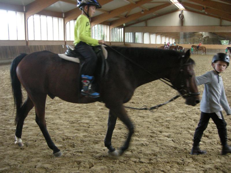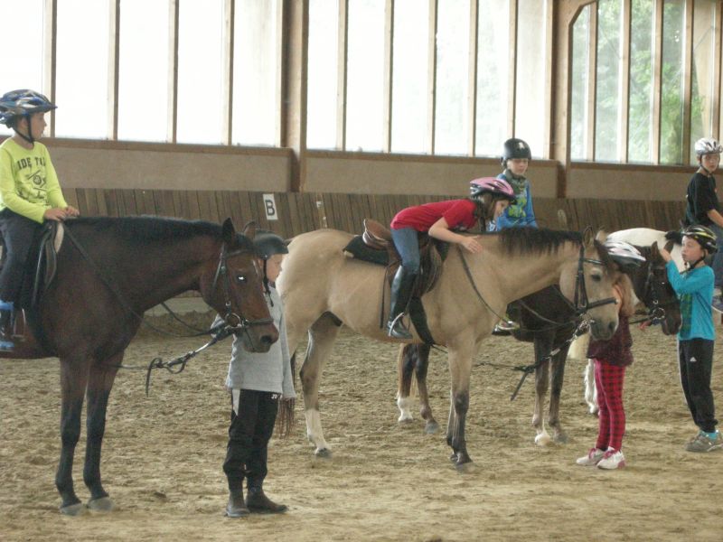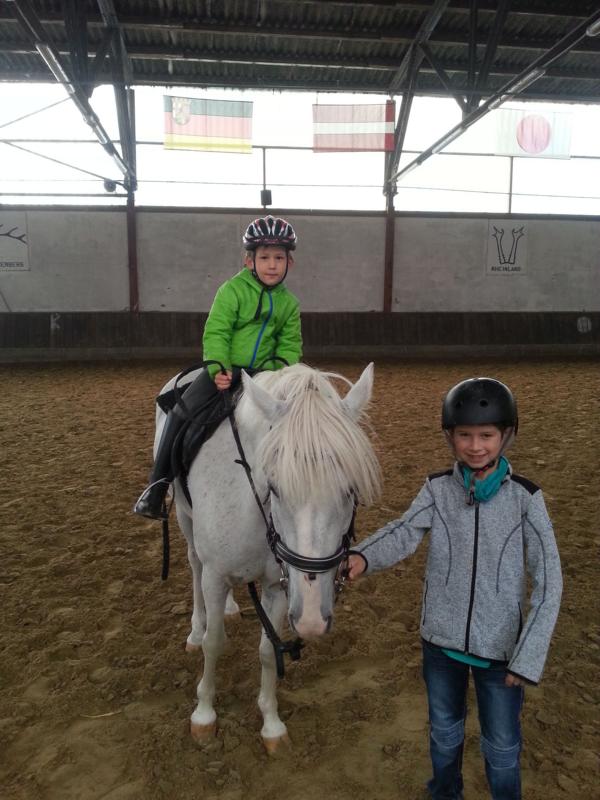 Es war Mittwoch und die letzte Reitstunde. Ich war ein bisschen traurig, weil ich wusste, dass es die letzte Reitstunde auf dem Hötzenhof war. In jeder Stunde habe ich mir ein Pferd mit einem Mitschüler geteilt und Michel war mein Partner. Mein Pferd hieß Barakadie. Er war ein Schimmel. Barakadie ging mir ab dem Widerrist bis zu den Ohren. In dieser Stunde übten wir das Auf- und Hinsetzen auf dem Pferd. Als wir getrabt sind, haben wir den Anschluss an die Gruppe verloren. Ich dachte: „Oh je, jetzt müssen wir schnell wieder aufholen.“ Damit wir wieder aufholten, mussten wir galoppieren. Barakadie war so schnell, dass ich dachte, ich falle gleich runter. Am Ende durften wir noch alleine Reiten. Somit war die letzte Reitstunde besonders aufregend.